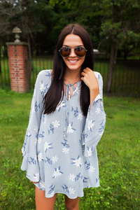 Grey Stripe/Floral Bell Sleeve Dress