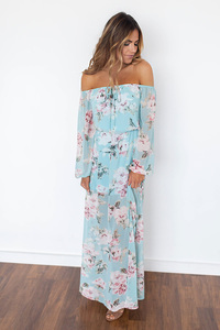 Adorable dusty mint ribbed maxi dress with V neckline, side slits, and racer back neckline. Unlined, not sheer. Fits true to size, the model is shown wearing a medium. Made of poly/rayon/spandex fabric. Hand wash- hang dry.