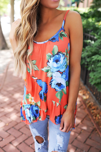 Orange Floral Ruffle Tank