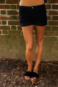 Super cute white denim shorts with high-rise waistline, destructed front details, and frayed hemline. Front & back pockets. Available in size small & medium only. These run true to size with some stretch, the model is shown wearing a size small. Made of cotton/poly/lycra fabric. Machine wash- tumble dry low.